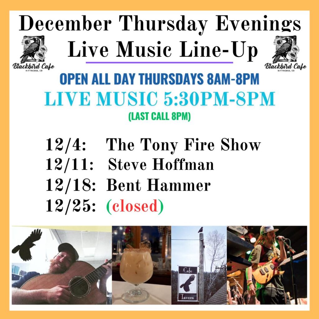 Thursdays : 8:00am to 8:00pm – Live Music 5:30pm-8:00pm
