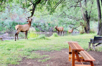 Our ambiance is quaint and cozy with close up views of nature, the mountains and the creek. What animals might you see from your table? We have table seating, bar seating, booths, and a stellar menu that includes something for everyone + desserts, cocktails, beer and wine. We also are family friendly with a healthy kids menu approved by our own kids.